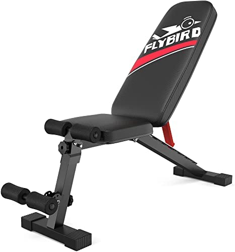 FLYBIRD Adjustable Weight Bench, Foldable Workout Benches for Home Gym, Sturdy Durable Comfortable Bench for Dumbbell Exercise Full Body Workout, Red/Waist Version
