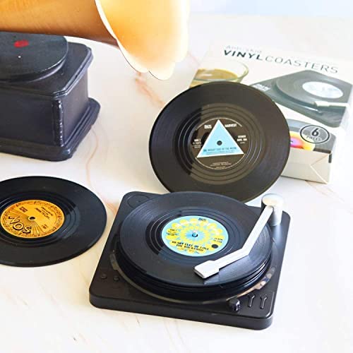 ★ PERFECT FOR MUISC LOVER–Set of 6 with a retro vinyl record player holder in a wonderful design gift box, they look like real vinyl records, every detail, cute and cool, great gifts for music lovers.