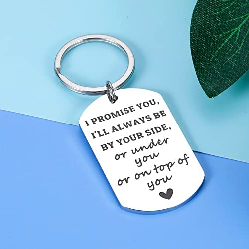 ❤【Boyfriend Girlfriend Gifts for Valentine’s Day】–This cute keychain engraved with “I promise you I will always be by your side, or under you, or on top of you.” It will be the best gifts to heat up your relationship with him/her! Valentine’s day gift for women men her him, funny boyfriend girlfriend gift, husband wife gifts, couple lover gift, fiance fiancee gifts, romantic gifts idea for boyfriend from girlfriend, sentimental gifts for boyfriend, wedding anniversary gift for husband wife.