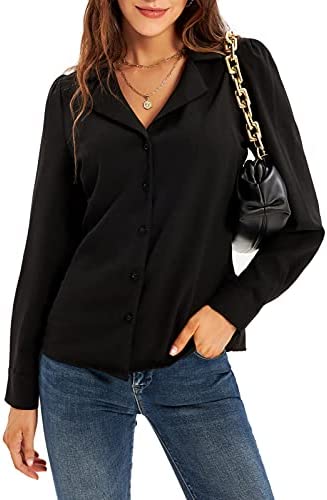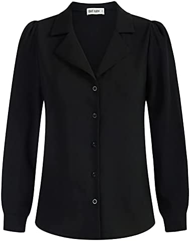【Features】Blouses & button-down shirts, button down, v neck, long puff sleeve, turn down collar, pleated back, loose fit design, lapel neck, lightweight, comfortable fabric.