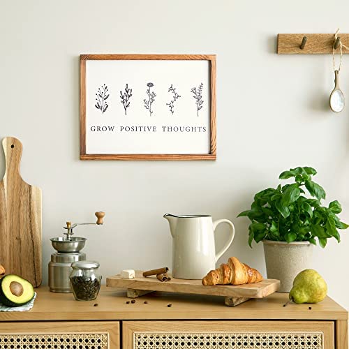 Framed Pine Wood Wall Art: Liswit Grow Positive Thoughts wild flower wall decor sign is made out of pine wood. Keep this sign handy to remind you to look for the positive in each and every day.