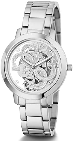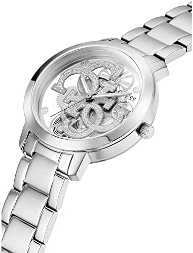 Our iconic Quattro G logo is reimagined on this elegant analog timepiece featuring a silver-tone arrangement and completely transparent glass dial, allowing sight of the analog movement and your wrist. Bracelet with pilot buckle closure.