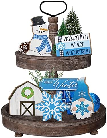 【Premium Wood Material】The winter tiered tray decor is made of premium wood material, which is durable, smooth and not easy to break. With high quality color painting, the patterns and words of the winter wooden signs are clear and you don’t need to worry about fading. Sturdy and beautiful, the winter tiered tray decoration bundle will be a perfect choice for your winter home and kitchen decor