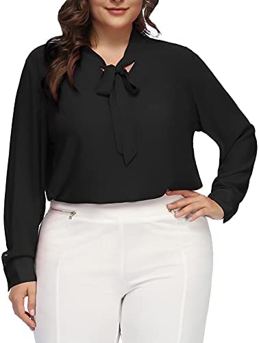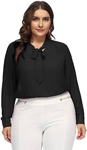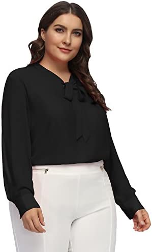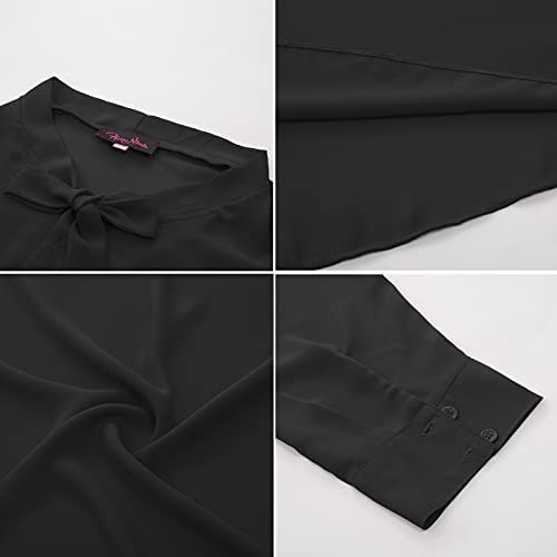 ❤️Design: Vintage bow tie collar, v neck design, pullover style, solid pattern, lightweight and thin fabric, long sleeve chiffon blouse for women.