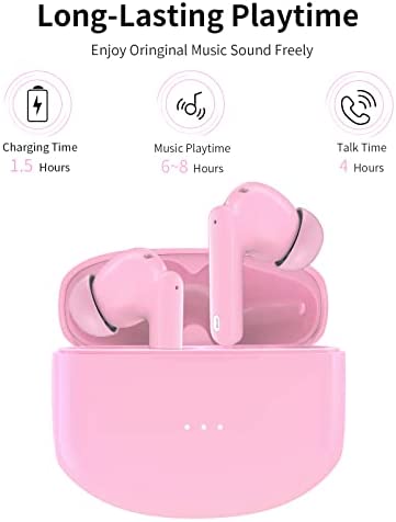 【Smart Auto-Pairing & Long Lasting】–Just open/close the case, it will power on/off automatically and connect/disconnect to the paired device. 6-8 hours Music Playtime, 4 hours Talk time, totally playtime up to 30+ hours using with charging case. NOTE: When pairing the earbuds with a new device, please check if it is being used with another connected device , otherwise, you need to disconnect them first, and then pair the new device.