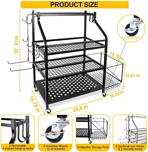 MULTI-PURPOSE HOME GYM STORAGE RACK: The gym organizer rack consists of 5 major storage parts,dumbbell storage rack easily get your gym equipment into categories. 3 Layers of metal mesh perfect for storing your weights,dumbbells,kettlebells,foam rollers,yoga brick,resistance band,roller wheel etc; One folding side basket rack to store your baseball bats & abdominal roller storage. 3-sectional iron holder & 4 movable hooks for other small items etc. This gym rack is enough to meet your daily use.