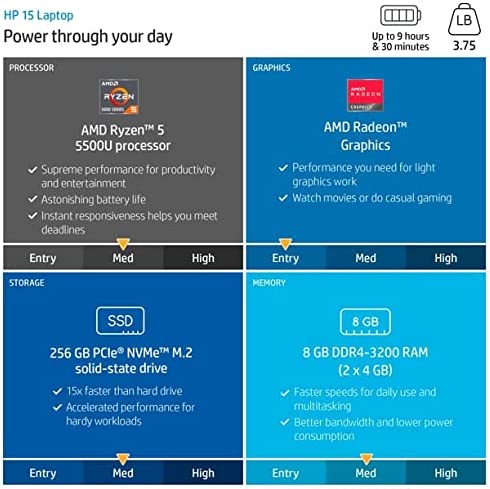 AMD Ryzen 5 5500U (up to 4.0 GHz Max Boost Clock, 8 MB L3 Cache, 6 Cores, 12 threads) With AMD Radeon Graphics