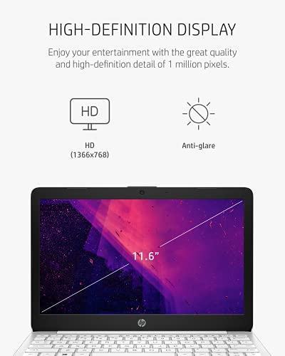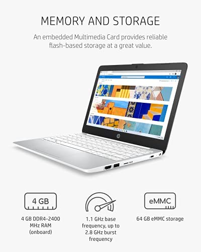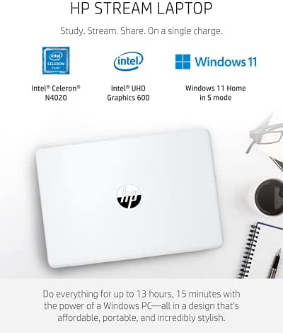 Live your best life on the go and in style with the slim and expressive HP Stream 11 Laptop. With its smooth finish, vertical brushed pattern, and pop of Diamond White color, this windows laptop perfectly fits your personality. The design isn’t only for looks; the ultra-thin laptop is super portable and its high-definition display contains an anti-glare panel—perfect for travel and computing out in the sun (1). This affordable HP laptop features powerful and reliable hardware, such as the dual-core Intel Celeron N4020 processor (2) and Intel UHD Graphics 600 (3). Plus, with an embedded Multimedia Card, you’ll enjoy 64 GB of storage for greater content security, fewer moving parts, and at a great value (4). Additionally, experience a boost to your 11.6-inch laptop’s overall performance and bandwidth thanks to 4 GB of RAM. And with up to 13 hours and 15 minutes of battery life, you’ll enjoy all that processing power and storage options from the start of your workday to the end of your evening streaming (5). Experience quicker boot-ups and strong protection against phishing and malware with the Windows 11 Home in S Mode (6). Plus, your device’s 1-year limited hardware warranty provides even more peace of mind. Whether you’re at home, the office, or in class, the dependable Realtek RTL8822CE 802.11a/b/g/n/ac (2×2) Wi-Fi (7) and Bluetooth 5.0 (8) combo is just the solution for preventing unwanted connection drops or waiting on endless load screens. Take advantage of a free 1-year subscription to Microsoft 365 and utilize the many new smart assistance tools and other creativity promoting features this HP laptop computer has to offer (9). Stay productive anywhere while shrinking your carbon footprint with a PC laptop that’s not only built with sustainability in mind, but is also ENERGY STAR certified (10) and EPEAT Silver registered (11). (1) High-definition (HD) content is required to view high-definition images. (2) Multi-core is designed to improve the performance of certain software products. Not all customers or software applications will necessarily benefit from the use of this technology. Performance and clock frequency will vary depending on application workload and your hardware and software configurations. Intel’s numbering, branding, and/or naming is not a measurement of higher performance. Intel, Pentium, Intel Core, Celeron, Iris Xe, Intel logo, and the Intel Inside logo are trademarks of Intel Corporation in the U.S. and other countries. (3) Shared video memory (UMA) uses part of the total system memory for video performance. System memory dedicated to video performance is not available for other use by other programs. (4) For storage drives, GB = 1 billion bytes. The actual formatted capacity is less. Up to 5.1GB of disk is reserved for system recovery software. (5) Battery life tested by HP using continuous FHD video playback, 1080p (1920×1080) resolution, 150 nits brightness, system audio level at 17%, player audio level at 100%, played full-screen from local storage, headphone attached, wireless on but not connected. Actual battery life will vary depending on configuration and maximum capacity will naturally decrease with time and usage. (6) Not all features are available in all editions or versions of Windows. Systems may require upgraded and/or separately purchased hardware, drivers, software, or BIOS update to take full advantage of Windows functionality. Windows 11 is automatically updated, which is always enabled. ISP fees may apply and additional requirements may apply over time for updates. Windows 11 in S mode works exclusively with apps from the Microsoft Store within Windows. Certain default settings, features, and apps cannot be changed. Some accessories and apps compatible with Windows 11 may not work (including some antivirus, PDF Writers, driver utilities, and accessibility apps) and performance may vary, even if you switch out of S mode. If you switch to Windows 11, you can’t switch back to S mode. (7) Wireless access point and internet service required and sold separately. The availability of public wireless access points is limited. Wi-Fi 5 (802.11ac) is backward compatible with prior Wi-Fi 5 specs. (8) Bluetooth is a trademark owned by its proprietor and used by HP Inc. under license. (9) Microsoft 365 Personal 1-year subscription included. Activation is required within 180 days of the Windows activation date. Microsoft 365 Family and Microsoft 365 Personal have non-commercial rights and are meant for personal use only. See microsoft.com for full details. (10) ENERGY STAR and the ENERGY STAR mark are registered trademarks owned by the U.S. Environmental Protection Agency. (11) Based on U.S. EPEAT registration according to IEEE 1680.1-2018 EPEAT. EPEAT status varies by country.