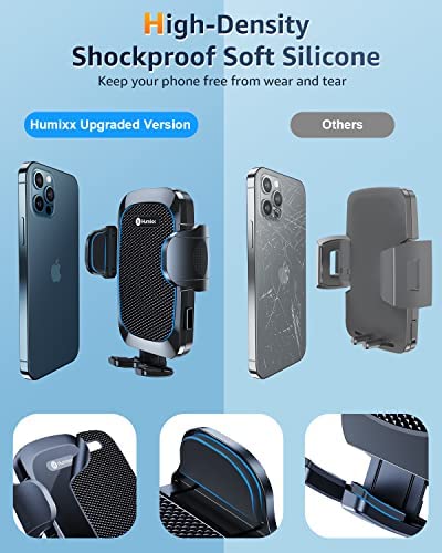 [All-Around Protection & User service] Say goodbye to the easy-scratched plastic panel phone holder. Humixx smartphone mount for car uses an innovative shock-proof texture made of PU material. And car mobile phone holder is also equipped with a thick layer of silicone. The comprehensive protection design makes leaves zero scratches on mobile phones. Moreover, whenever you need us, Humixx employees will always be here and handle all problems for you