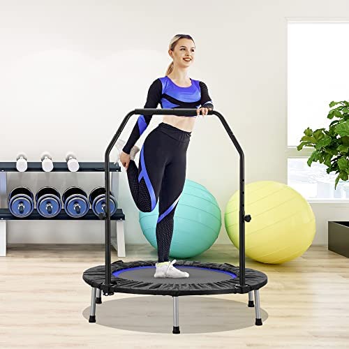 HYD-Parts 40" Foldable Mini Trampoline for Adults and Kids Portable Exercise Rebounder with Adjustable Foam Handle Fitness Trampoline Indoor/Outdoor