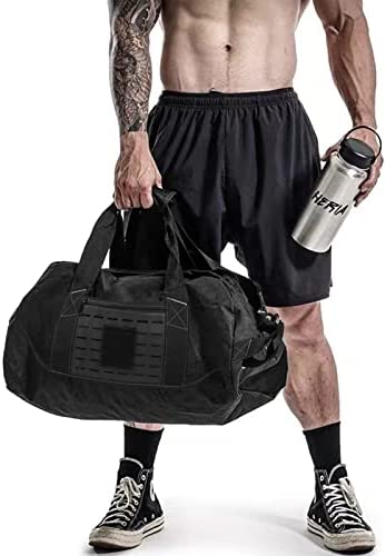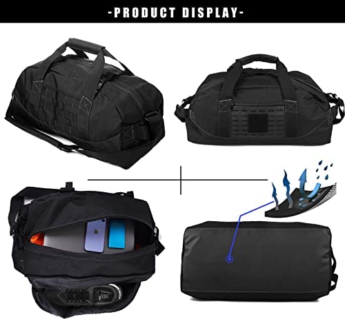 【Workout Bags for Gym Men】Sports bag clad with MOLLE webbing for customizability with pouches and attachments.The duffle bag is a great bag for workout, travel, sports activity,overnight,basketball,football,yoga, fishing, swimming,camping, hiking,weekender,carry on bag,luggage and many outdoor activities.