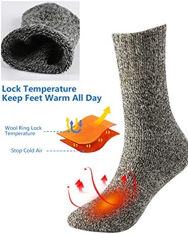 High Quality: These thick winter socks are made of 35% Wool + 29% Cotton + 36% Polyester. Our socks are not only soft and comfortable, but also sweat absorption, warmth and durable.