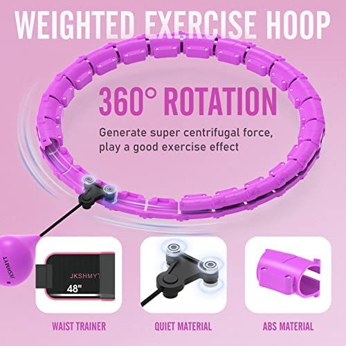 JKSHMYT Smart Weighted Fit Hoop Plus Size for Adults Weight Loss, Hula Circle-2 in 1 Infinity Fitness Hoop, 24 Links Detachable & Size Adjustable, with Ball Auto Rotate 360 Degree for Women
