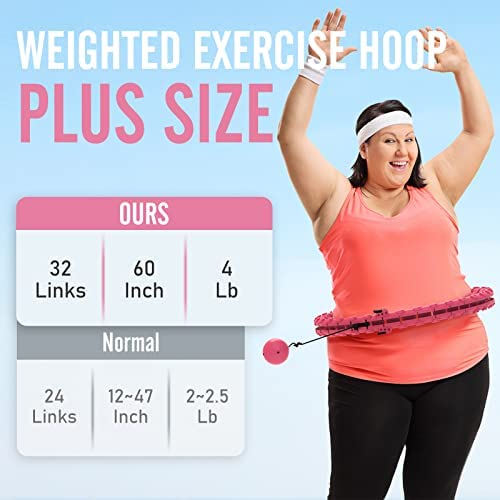 JKSHMYT Smart Weighted Hula Circle Hoop for Adults Weight Loss, Infinity Fitness Hoop, Fit Hoop 4lb Plus Size 60 inch Waist, 32 Detachable Links, Suitable for Women and Beginners