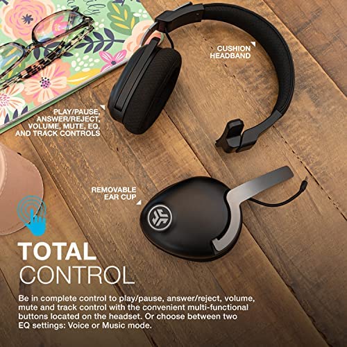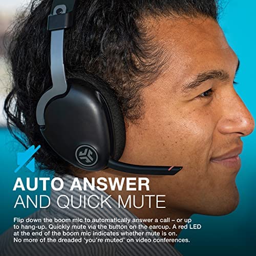 Total Control / Quick Mute Indicator: Be in complete control to play/pause, answer/reject, volume, mute and track control with the convenient multi-functional buttons located on the headset. Or choose between two EQ settings: Voice or Music mode. Flip down the boom mic to automatically answer a call – or up to hang-up. Quickly mute via the button on the earcup. A red LED at the end of the boom mic indicates whether mute is on. No more of the dreaded ‘you’re muted’ on video conferences.