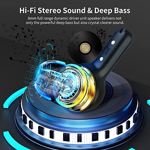 【Immersive Stereo Sound&Clear Call】This earbuds with 6 mm vibrating diaphragm and HD rendering technology, ensure a pure and high sound quality with crystal crisp treble and deep bass sound.4 microphones earbuds adopt neural network noise reduction algorithm, effectively reduce the impact of noise in the surrounding environment during a call and improve the clarity of the call.