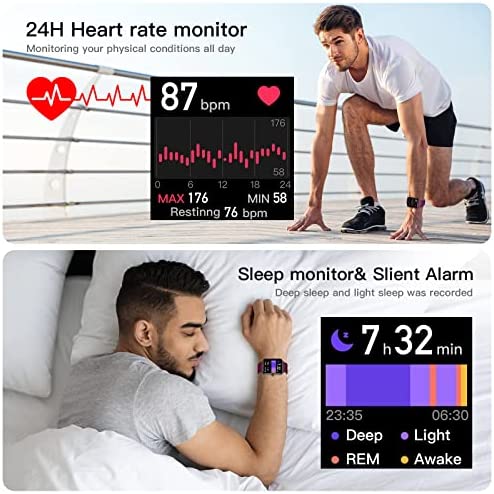 IP68 Waterproof and 7 Days Battery Life: Our fitness smartwatch is designed with IP68 water resistance rating, which can resist any sweat and rain of your daily activities, and can even be worn while swimming. After fully charged, you can enjoy up to 7 days use time, or up to 30 days standby time.