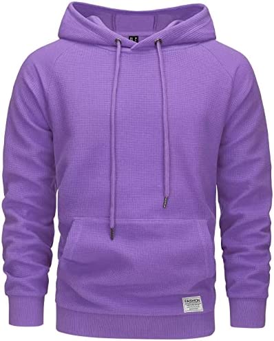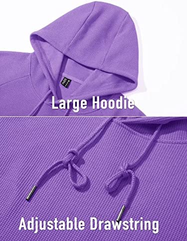 The sweatshirts made of 60% cotton and 40% polyester. ultra soft, lightweight, skin-friendly and durable.Windproof: There are drawstrings on hood to adjust and against the cold. Ribbed hem and cuffs fit the body better.Casual Style: Simple and plain design, long sleeves, waffle pattern, drawstring hoodie with kangaroo pocket.
