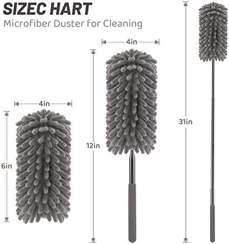 ✅EXTENDABLE POLE – Cleaning your home has never been easier with our bendable extendable feather duster. The telescoping 31-inch pole can be adjusted from 12 inches to 31 inches to adjust to different cleaning needs and various users making it suitable for adults and children and wiping up high places such as fans, ceiling without the need for risky ladders and chair.