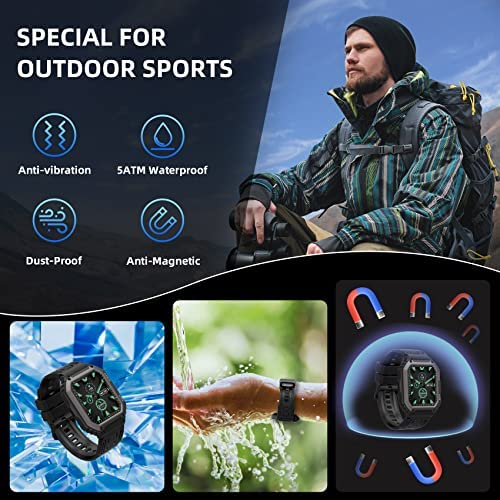 ⌚【MILITARY GRADE SMARTWATCH】- Our smart watches for men pass dozens of standard tests including extreme temperature, low-pressure altitude, dustproof, salt spray, fluid contamination, etc. The rugged smartwatch can be submerged in 50M (IP68 waterproof) water, fitness watch can be your constant and reliable exercise companion.
