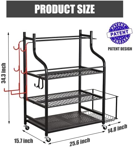 【LARGE CAPACITY STORAGE ORGANIZER】: The storage rack is quipped with 3 layers of metal mesh, a side basket, 3-sectional iron holder and several hanging hooks which can store for various yoga gear and exercise equipment.