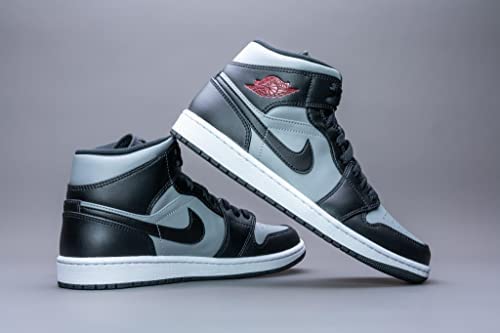 The “Shadow/Red” is a versatile colorway for the popular mid-top Air Jordan 1 that features Particle Grey leather on the perforated toe, mid-panel, collar, and heel