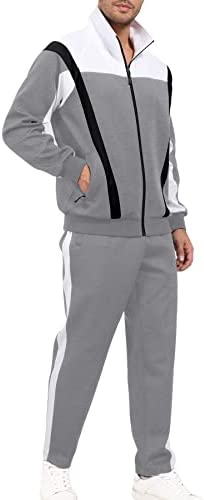 *Men’s Tracksuit Set Features: Full zipper closure casual sweat suit, stand-up collar provides extra coverage and protection, ribbed hem and cuffs seal in warmth. Both jogging sweatshirt & sweatpants with side pockets to meet your storage needs, delicate elastic waist design with drawstring for fit waist better.