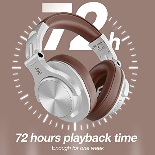 Dual Mode & Never Power Off – 1) Wireless mode, OneOdio Fusion A70 provides up to 72 hrs playtime on a single charge. 2) Wired mode, you can also use it as a wired headphone with the provided 2 different audio jack cables (6.35mm to 3.5mm; 3.5mm to 3.5mm), so the headphone will be never powered off