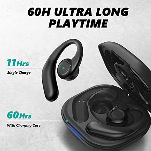 【Charge on the go & IPX7 Waterproof】Earbuds last 11 hours of playback time with one charge and can be extended up to 60 hours with a portable charging case in use. Plus, wireless headphones boast IPX7-rated protection that prevents ordinary splashing water and rain. (Please note: The charging case is not waterproof)