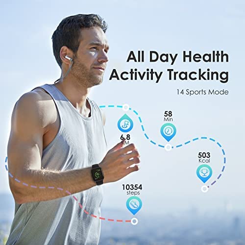 Fitness Tracker: 1.3-inch fitness watch has 14 sports modes (swimming, running, hiking, swimming, cycling, spinning, yoga, walking, hiking, fitness, etc). For different workouts, each sport mode has detailed sports statistics, fitness watches for men and women it allows you to exercise more effectively.