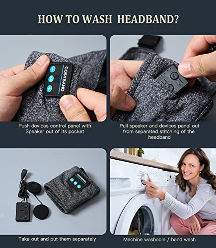 【Comfortable, Breathable and Washable】 Wireless Bluetooth headband headphones are nestled into an extremely stretchy fabric and a breathable mesh lining, that’s not only soft but also very skin-friendly, and will easily stretch to fit all head sizes. Because the earphones can be detached, You can wash and dry the bluetooth headband in any household machine without damaging the speakers.