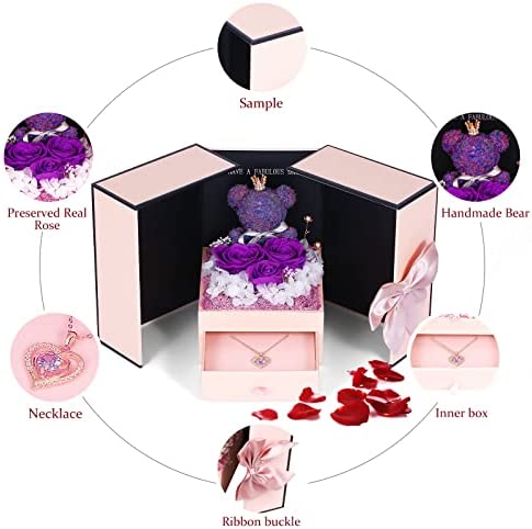 【What you get】The preserved rose necklace set includes a 925 sterling silver jewelry necklace with double heart and a gift box of preserved rose.