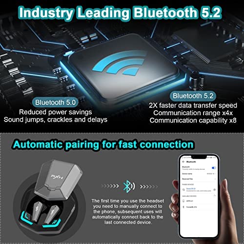 【PROFESSIONAL GAMING HEADSET】: PXN S2 wireless gaming headset with microphone uses advanced Bluetooth 5.2 transmission technology and supports A2DP, AVRCP, HFP, HSP and other protocols. Developed with low latency technology, it greatly improves sensitivity and connection stability while enjoying 60ms senseless latency, providing you with an excellent listening experience while talking, playing games, listening to music and watching videos.
