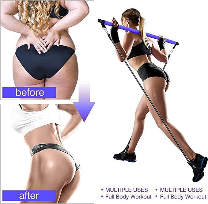 【FULL BODY EXERCISE】- Pilates home workout equipment can be used to perform many different types of exercise (upper and lower body), build muscle, lose weight and shape your arms, abs, legs and glutes while also getting cardio in. The Pilates exercise bar set can be used to train your arms. legs, hips, waist, neck, back, gluteus, etc.