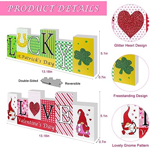 【Reversible Table Decor】 Decorate your home this holiday, starting with this practical double-sided wooden decor! The front printed with the letters “LOVE” & “LUCKY” and covered in glitter heart & shamrock, classic pattern. Ideal for the valentines and St. Patrick’s Day celebrations.