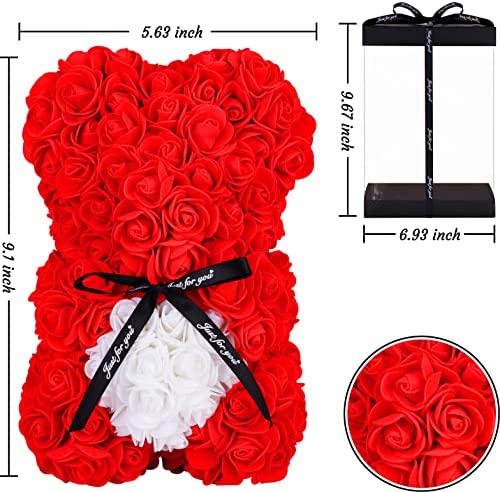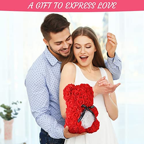Rose Bear with Box -Artificial Flowers Rose Teddy Bear- The Rose Bear with Greeting Card-Valentine's Day Gifts for Her-Gifts for Mom, Wife or Kids-Birthday Gifts& Wedding Decorations-Red