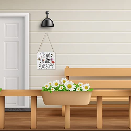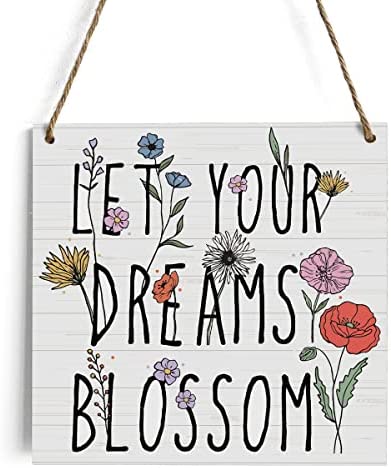 Rustic Flower Wood Wall Art Wall Hanging Decor Inspirational Quotes Wooden Decorative Plaque Sign for Home Farmhouse Office Bathroom Living Room Bedroom Classroom Decor Let Your Dreams Blossom Sign