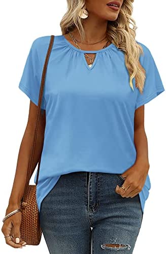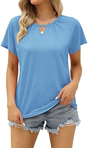 Feature: Classic crew neck tops, short sleeve keyhole t shirts, tunic tops to wear with leggings, plain basic blouses. A chic summer wardrobe staple for any outfits and looks.