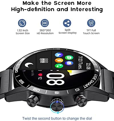 ⌚ 【2022 New Design Smart Watch】The ultra-thin metal frame with 1.32″ HD round full touch color screen brings comfortable touch and excellent visual experience. Also support intelligent split screen, the buttons on the watch side can change watch face and open watch menu, make it more easily to use than other smartwatch. This fitness watch also added a password lock function, protect your personal data. This watch also has voice assistants which will makes use convenient.