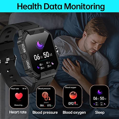 【Heart Rate & Sleep Quality Monitor】: The Men’s smart watches has built-in acceleration sensors and optical sensors, which can monitor your heart rate, blood pressure, and blood oxygen in real-time. and the smartwatch will also automatically track the sleep status such as deep, light, awake sleep patterns that can be synchronized to the mobile APP for analysis to help you better understand your health status.