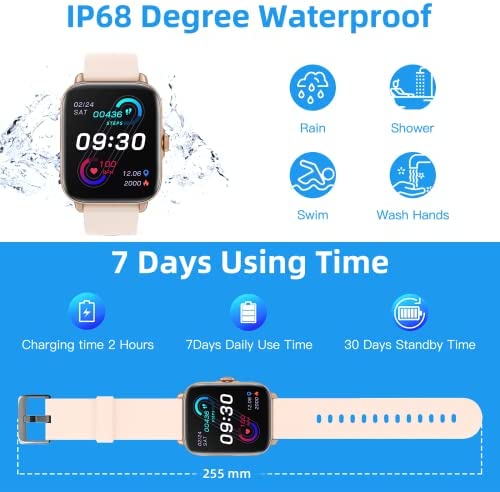 【High Compatibility & Long Running Time】This smartwatch is compatible with IOS 8.0, Android 5.0 and above. This smart watch charges quickly and has a long battery life. 2 hours of full charging, 5 days of continuous use (connecting Bluetooth call)/ 7 days of continuous use (not connected to Bluetooth call), and 30 days of standby.