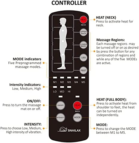 Vibration Massage – 10 invigorating vibrating Massage motors provides soothing vibrating massage full body to help relief stress, tension and eliminate fatigue.(the Massage mattress pad with 5 Massage Modes,4 selective massage zones,3 Intensities to achieve the best suited for your needs.)Note: This is not a Shiatsu kneading massager with rolling balls; this is a vibration massager only.