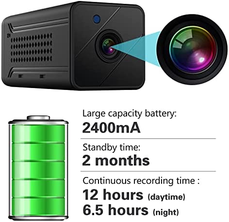 Long Lasting Battery Life: The Q7 mini camera comes with high quality 2400mAh battery which can continuous record for 12 hours and the standby time is up to 2 months when you set it to motion detection mode. The app will remind you when the battery is going to run out