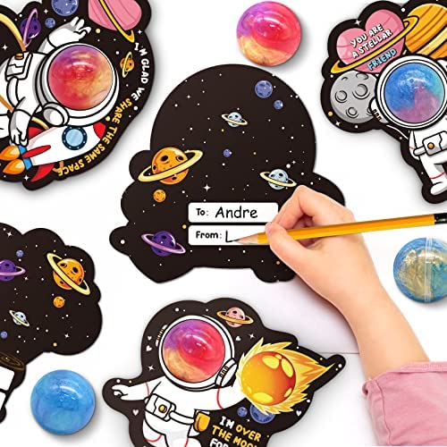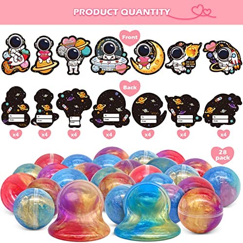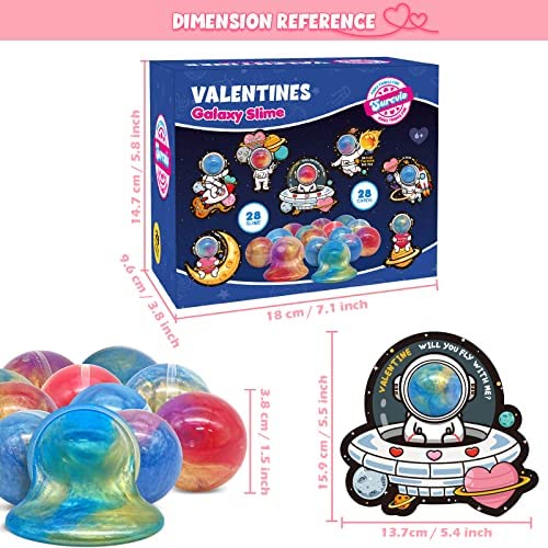 [ Super Value Pack ] Our Valentine Day gifts set includes 28 pack galaxy slime and 28 pack astronaut theme valentines cards (7 designs)