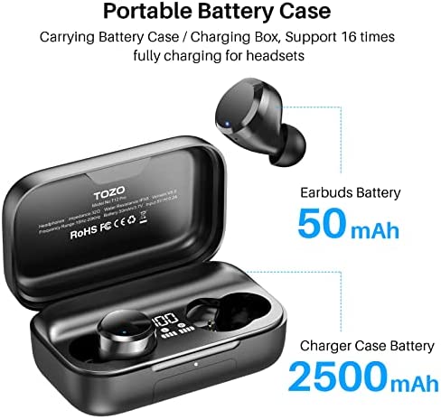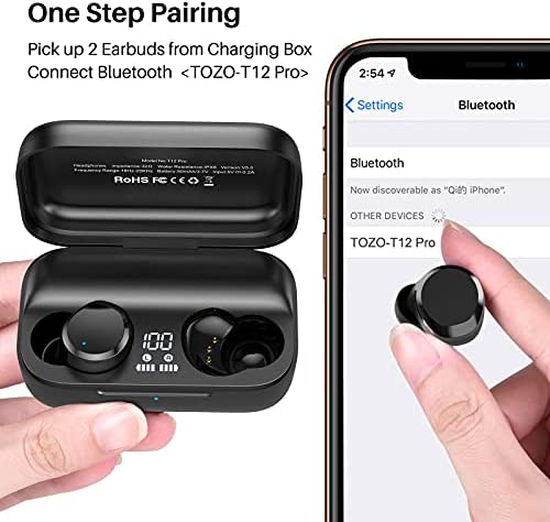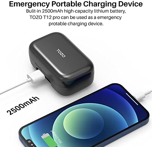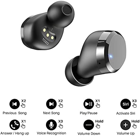 [IPX8 Waterproof & Touch Control ] Earbuds and charging case inner Nano-coating makes it possible to waterproof for 1 meters deep for 30 minutes. It is suitable for sports to prevent water. Ideal for sweating it out at the gym ,Even Wash the earbuds and base. Features with touch control sensors, TOZO T12 pro Headset can largely minimize the pressure to your ears when you touch the button for various functions.