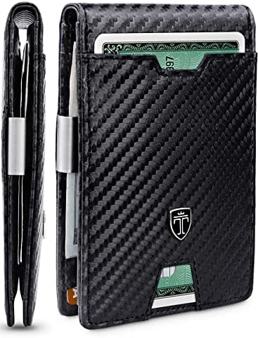 Product details: 11 Card slots Stainless-steel money clip RFID-protection for all cards Classy metal emblem Dimensions: 4.5″ in x 3.1″ in x 0.6″ in (closed and empty) Weight: 2.4 oz (empty weight) Material: Premium faux leather