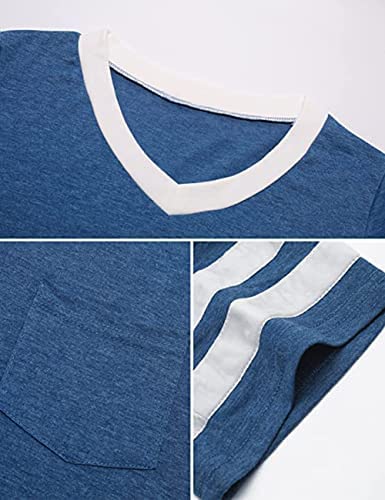 Features: short sleeve,v neck,simple pocket design, soft and comfortable fabric.
