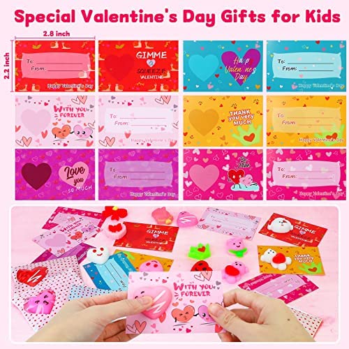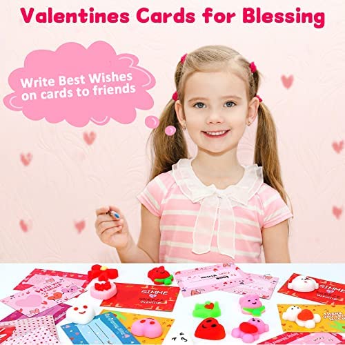 UDOGI Valentines Day Gifts for Kids, 36 Pack Valentines Day Cards for Kids School- Kawaii Mochi Squishy Toys Bulk with Valentines Cards for Kids Classroom School Exchange Party Favors