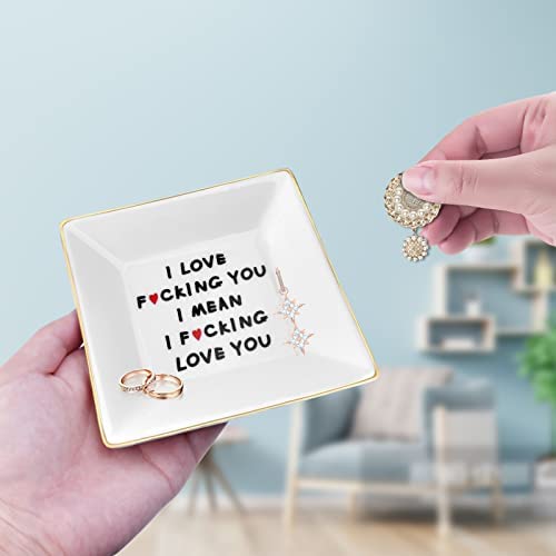 🎁【Valentines Day Gifts】 The Ring Dish is a perfect gifts on Valentines Day Christmas Birthday Mother’s day Thanksgiving day and New Year .The ceramic jewelry ring dish is printed with heart-warming words: “I Love F*cking You, I Mean I F*cking Love you”.