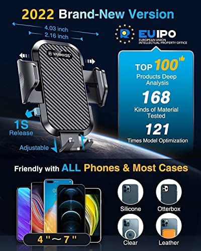 【No holder better than it】With the 2022 latest easy clamp and Metal-Cored Hook design,The four-point positioning of the phone holder for car can hold the phone stably while clamping one of the car’s air outlet blades. even on a bumpy road, enabling you to drive in confidence.Low-profile mount works with most car vents.